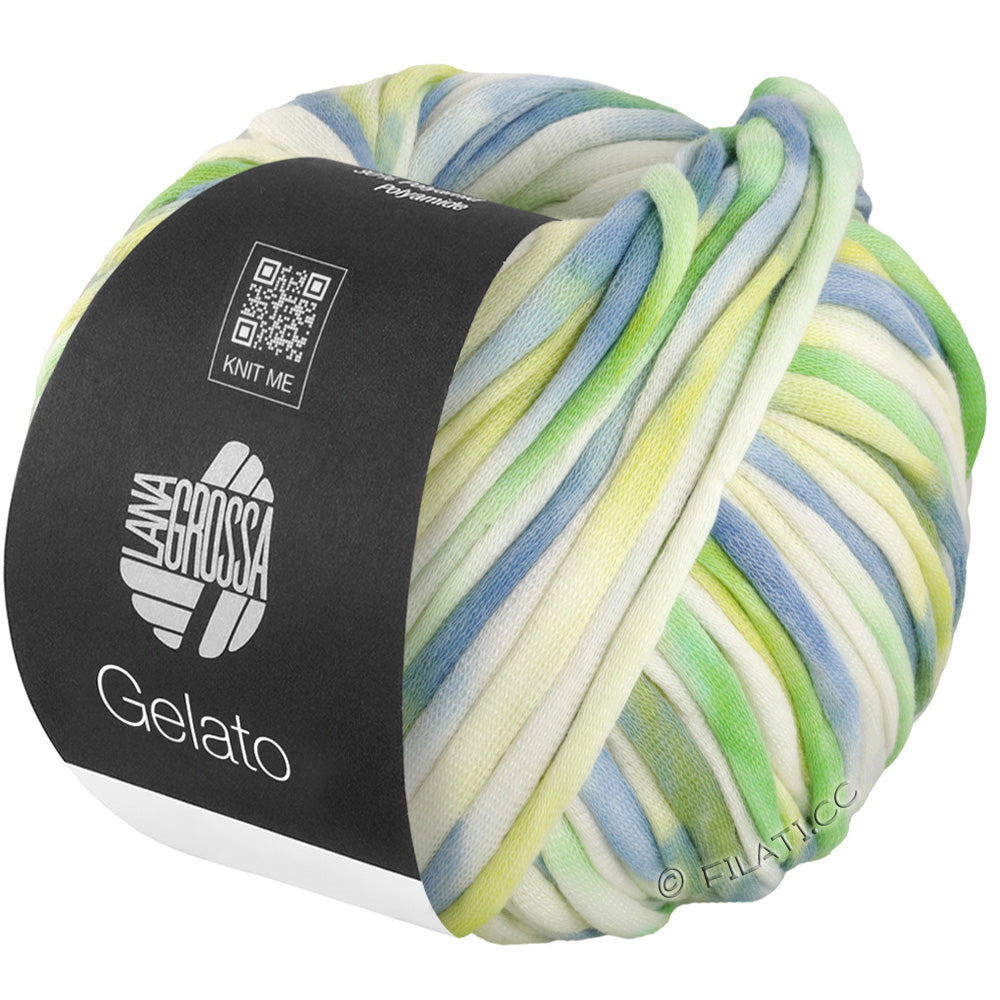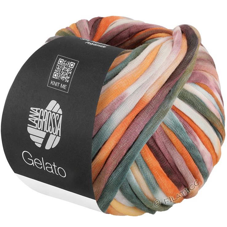 Gelato er vores nye yndlings sommergarn, fordi den kan bruges til mange af vores mønstre på de store pinde som fx: Woolstocks Anni, Irma, Kristine, Kristine bluse, Hanne, Karin og Elvira. Men vi har også skabt en sommertop specielt til Gelato garnet - nemlig Woolstocks Candy. Da Gelato er bomuld, vil det selvfølgelig falde på en anden måde end vores tykke mohair, og det er også lidt tungere, da det kun løber 40 m på 50 g. (det sælges i 100 g nøgler og altså 80 m) Men det er lækkert blødt, elastisk og overraskende let. Et virkelig sjovt og behageligt sommergarn til pind 12-15 mm. Husk at jo større en pind desto mindre garn skal du bruge. Derfor kan det bedst betale sig at strikke Gelato på pind 15 mm.