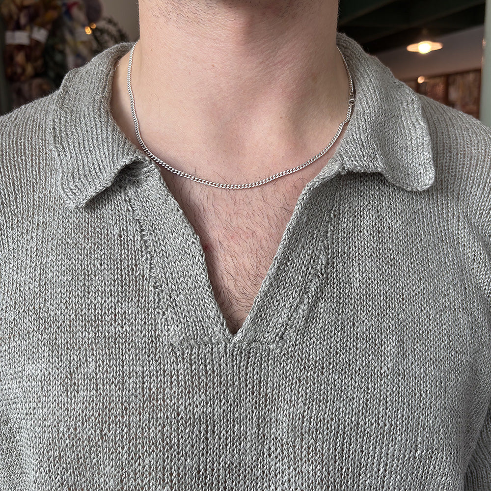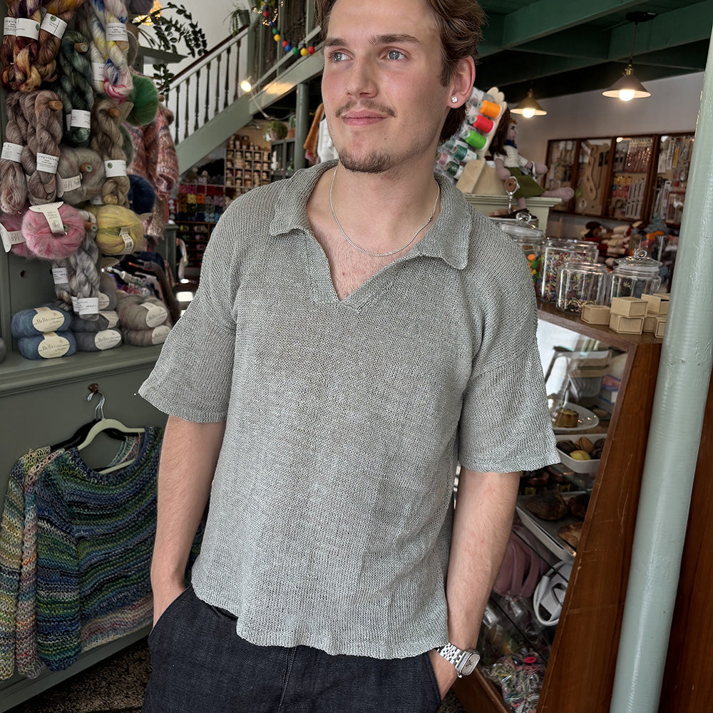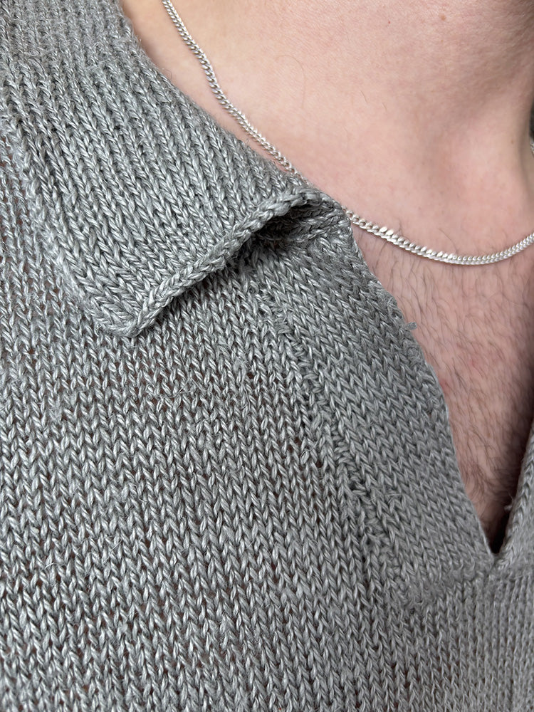 Hør kryber cirka 5% i vask, og det er derfor vigtigt, at du enten strikker den cirka 3 cm længere, end du ønsker den, eller gør dig umage med at strække den i længden efter hver vask. Det kan godt lade sig gøre at strække den tilbage i den oprindelige længde, mens poloen er våd.