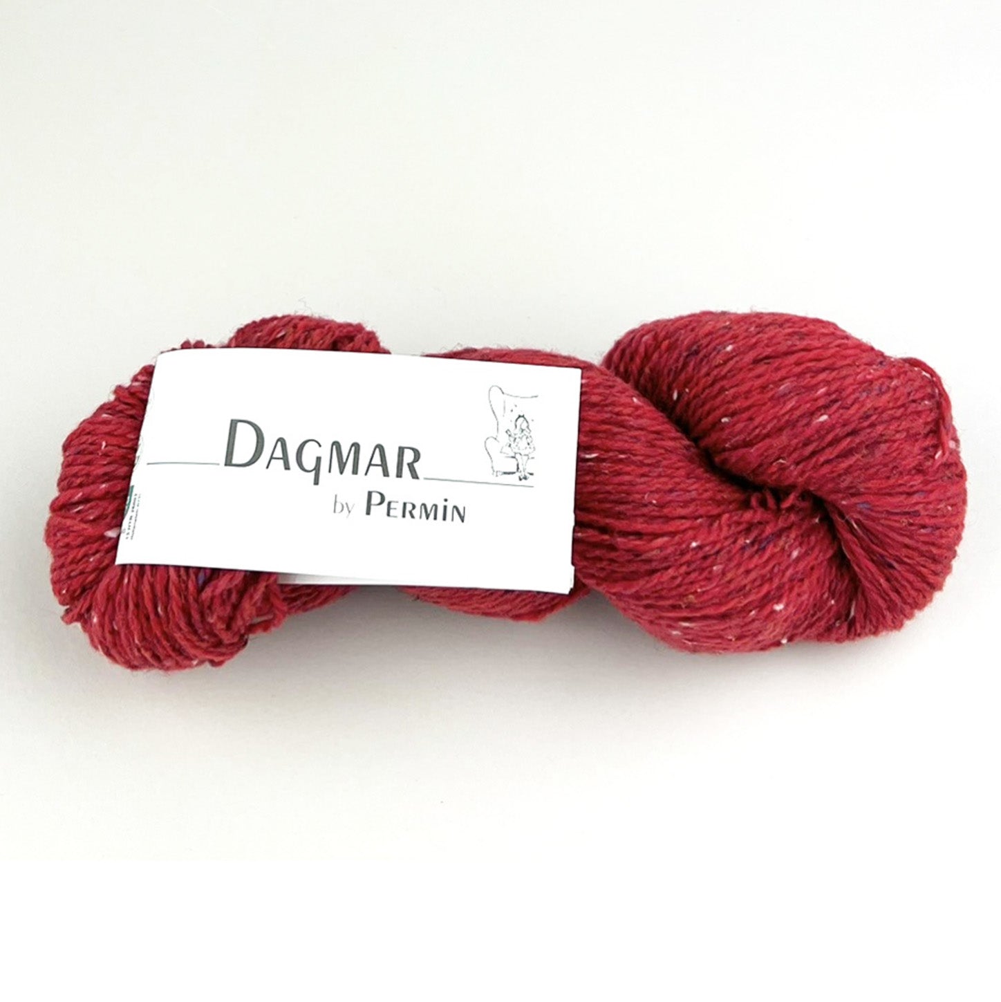 Vi elsker tweed-garner og denne tweed er dejlig billig i forhold til tilsvarende kvaliteter. Det gør den ikke mindre lækker eller mindre blød. Den smule kunststof den indeholder, gør Dagmar mere elastisk end fx genbrugsulden Luna også fra Permin. Luna har mistet sin elasticitet fordi fibrene er behandlet flere gange. Dagmar er velegnet til tykke strømper, da kunststoffet også gør det slidstærkt. Vi har strikket en Woolstocks Sophie af Dagmar sammen med Dolce Mohair fra Mondial, for at vise en billigere udgave, end hvis vi brugte en ren uld sammen med Silkemohair.